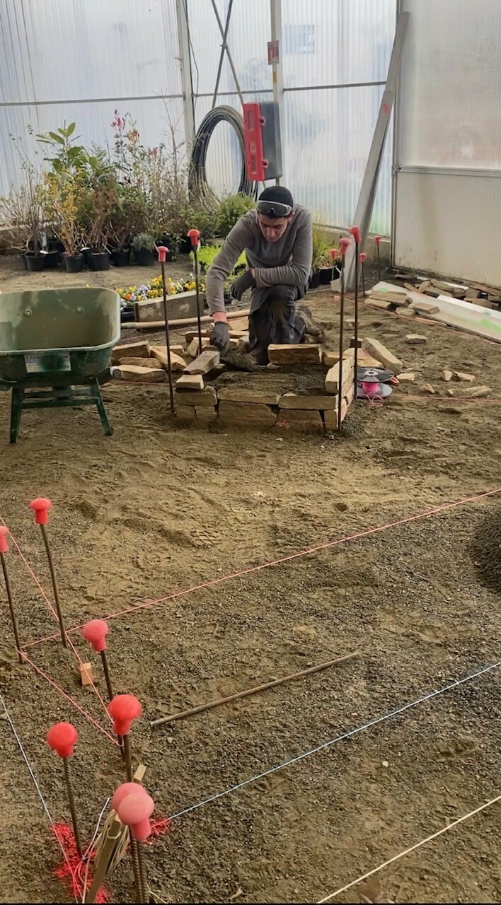 Ils doivent réaliser une mise en scène avec muret de pierres, chaînette pavée, dallage, bandes parallèles, plantation, gazon, sablage et l’ensemble doit être esthétique.