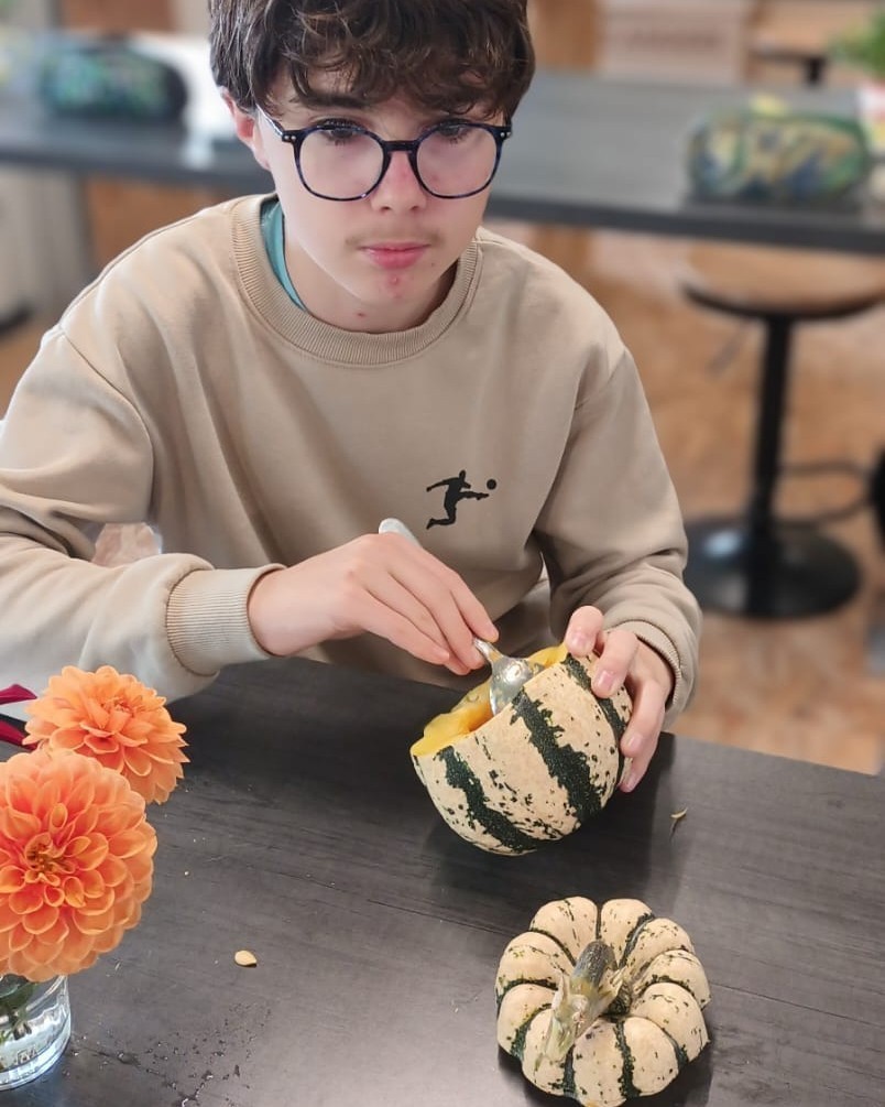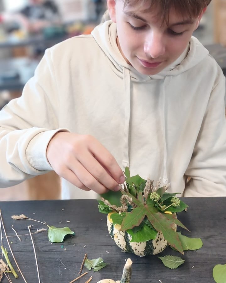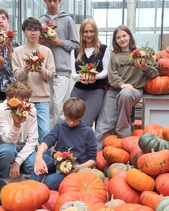 Les élèves de CAP 1ʳᵉ année Métiers de l’Agriculture ont laissé exprimer leur créativité lors d’un atelier d’initiation aux compositions piquées automnales ✨ Bravo à eux pour ces premières réalisations hautes en couleurs !