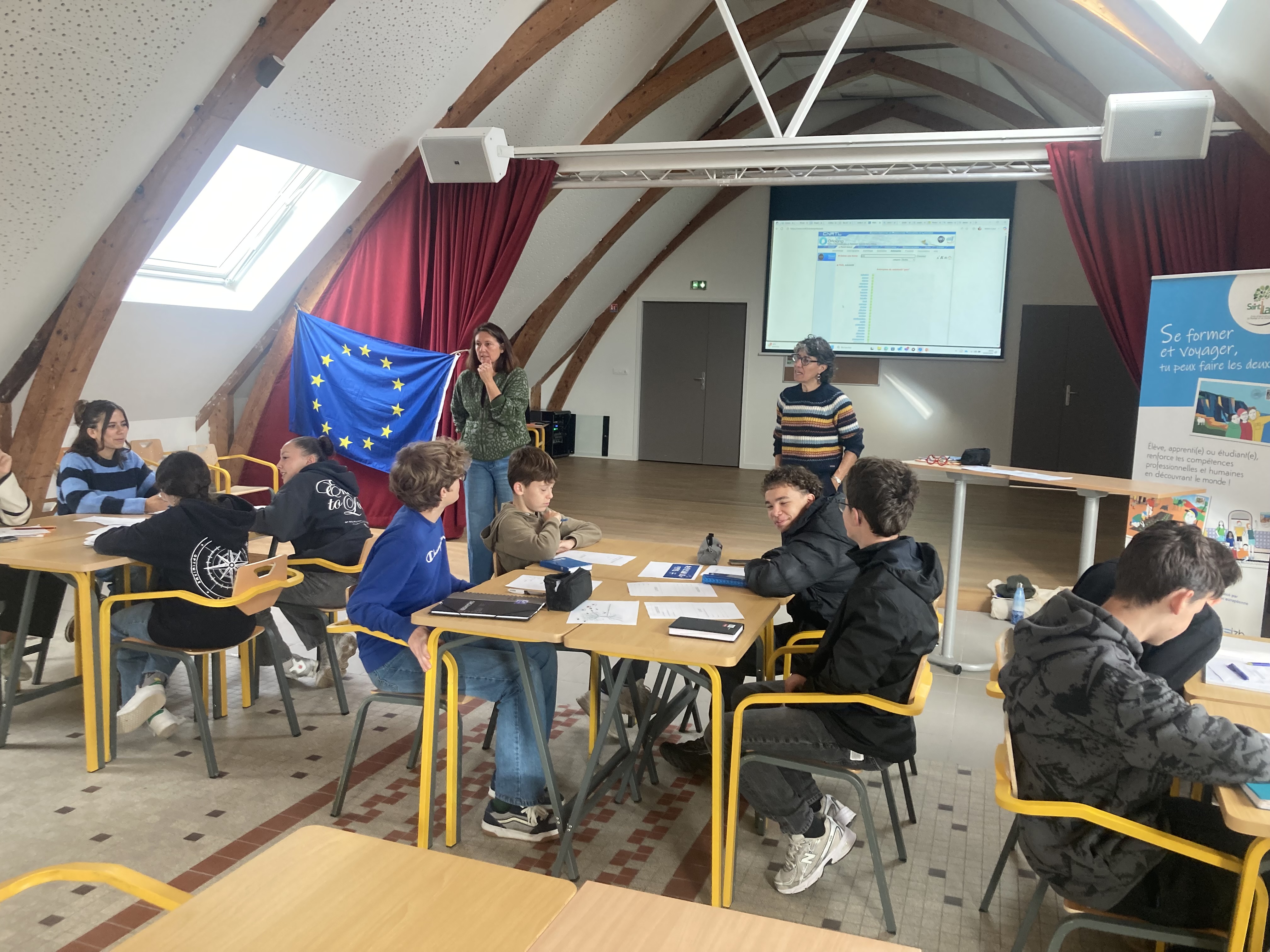 Erasmus Days à Saint Ilan : sessions d’information autour des valeurs de l’Union européenne et du programme Erasmus+ ! Les élèves de 3ᵉ, CAP 1 et Seconde ont pu échanger et en apprendre davantage sur la richesse des projets européens, les réussites du programme Erasmus+, les projets financés par l’Union européenne