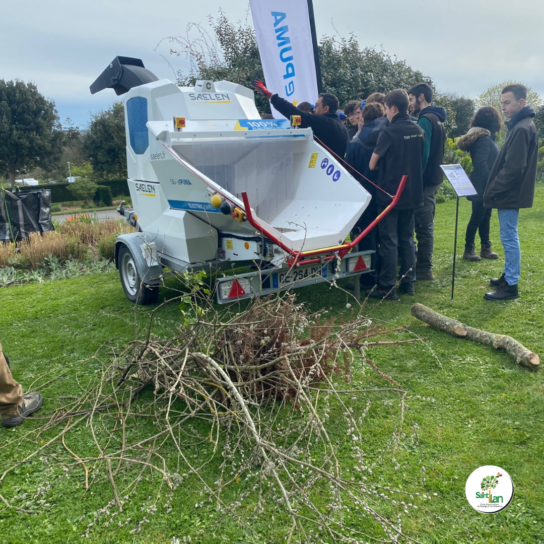 A l'école Saint Ilan aujourd'hui vous pouvez voir des machines, des articles, du matériels pour les professionnels des aménagements des espaces verts.