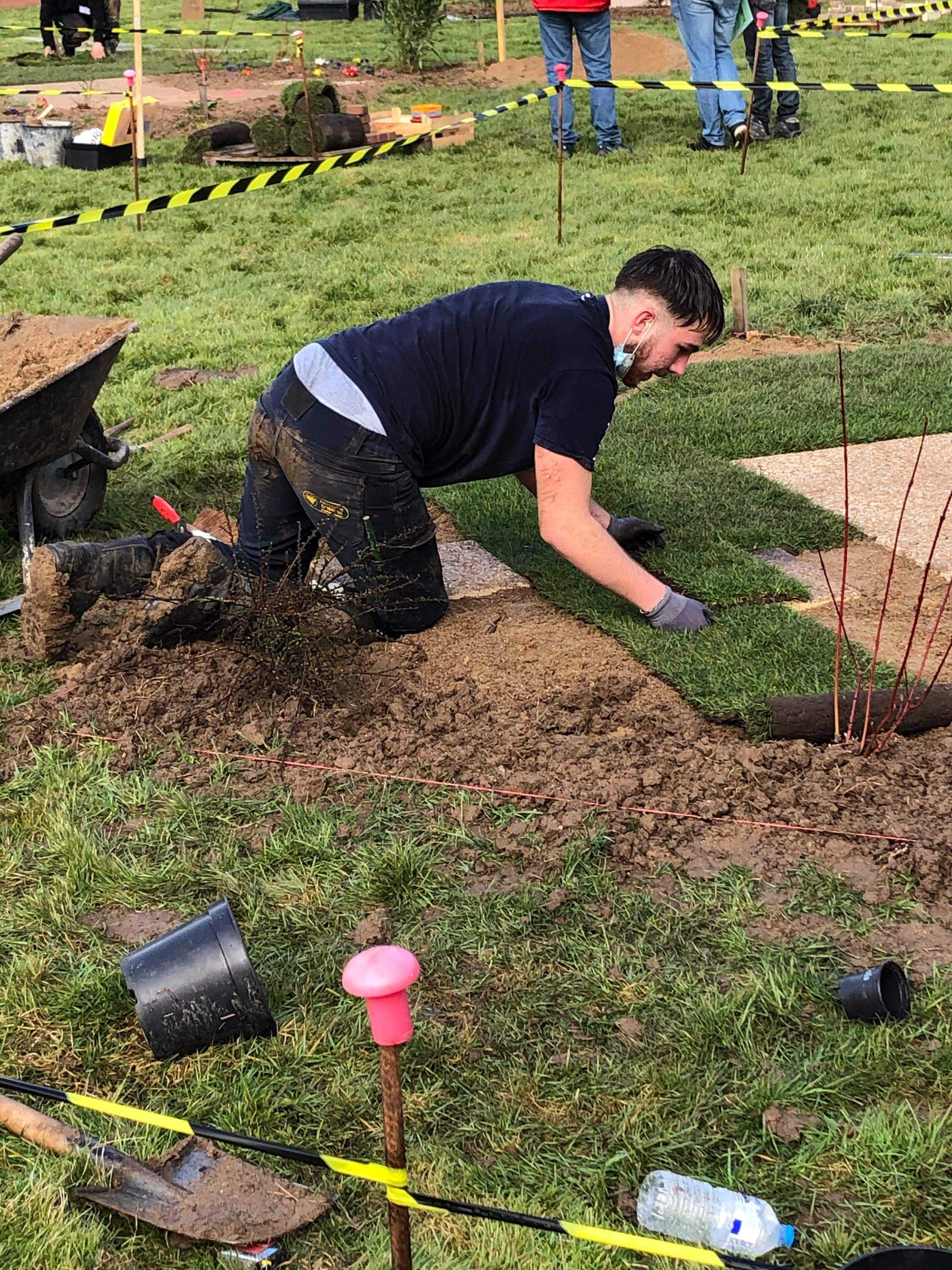 Dans l'ouvrage nous avons un dallage, un pavage, gazon de placage, pas japonais et plantations.