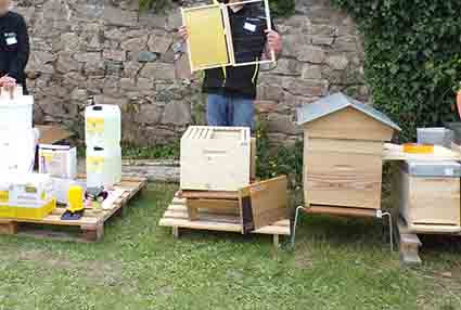 À l’espace Eco-pâturage, des professionnels de l’apiculture expliquent le fonctionnement de différentes ruches et la démarche de l’éco-pâturage.