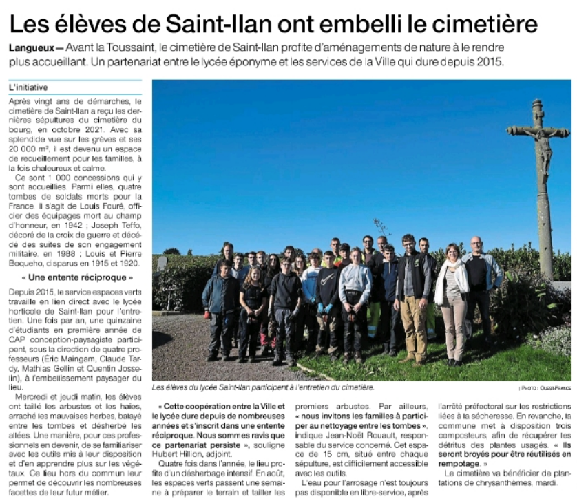 "Juste avant la Toussaint, le cimetière de Saint-Ilan profite d'aménagements de nature à le rendre plus accueillant."