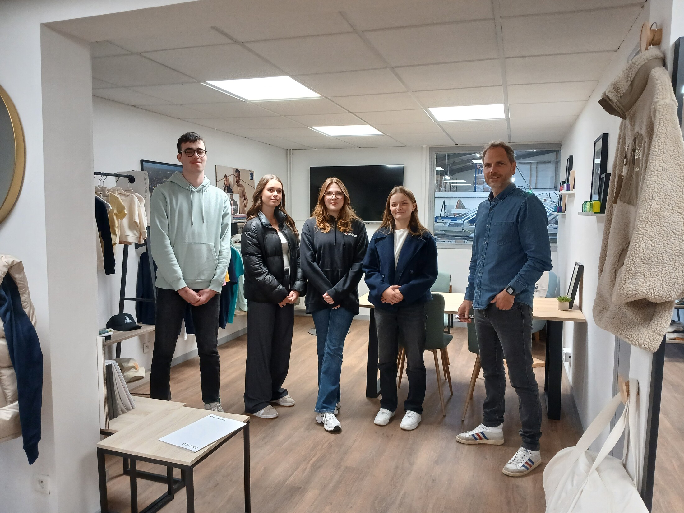 Le Directeur commercial, a eu l’immense gentillesse de leur faire une visite guidée de l’entreprise afin de leur expliquer les différentes techniques de personnalisation de vêtement (sérigraphie, transfert, impression numérique et pour finir la broderie).
